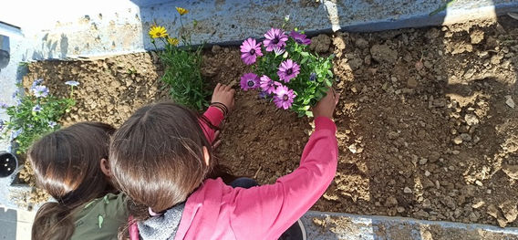 Οι μαθητές/τριες δημιούργησαν το σχολικό μας κήπο. Φύτεψαν ήταν μαρούλια και κρεμμυδάκια.
