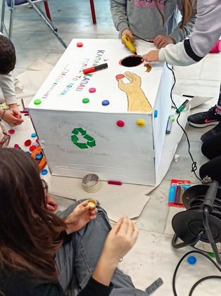 Στο επόμενο εργαστήριο οι μαθητές/τριες ετοίμασαν το κουτάκι για την ανακύκλωση αλουμινιου.